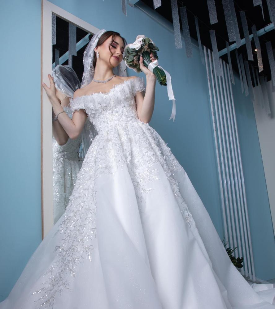 نستخدم افضل و اجود الاقمشة ذات الجودة العالية لصنع فستان الرفاف